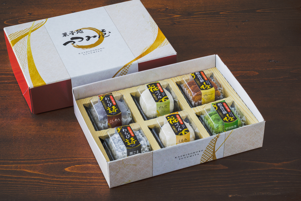 和菓子ギフトセット 福づつみ/わらび詩/和良日餅-極-の詰め合わせギフトセットです。 組合せは自由にお選び頂けます。 ※お渡し時、中の商品は全て冷凍状態となっております。 6個入:1,400 円(税込) 12個入:2,700 円(税込) 商品一覧へ戻る